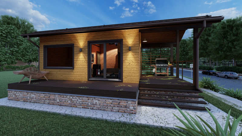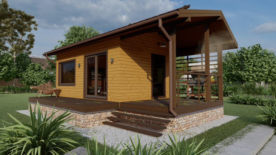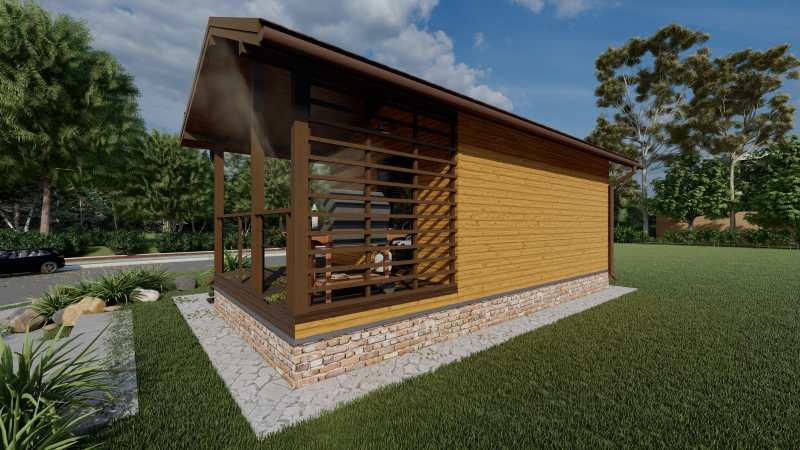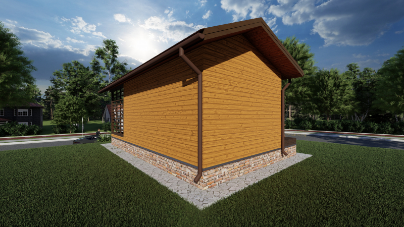 Фундамент на сваях, перекрытия по деревянным балкам, кровля — металлочерепица.