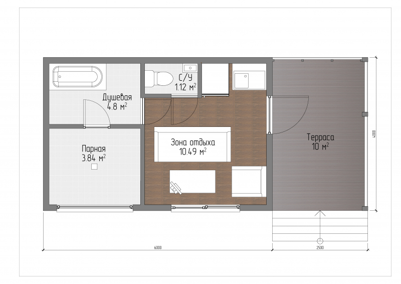 Размеры: 7,5 x 8,2 м